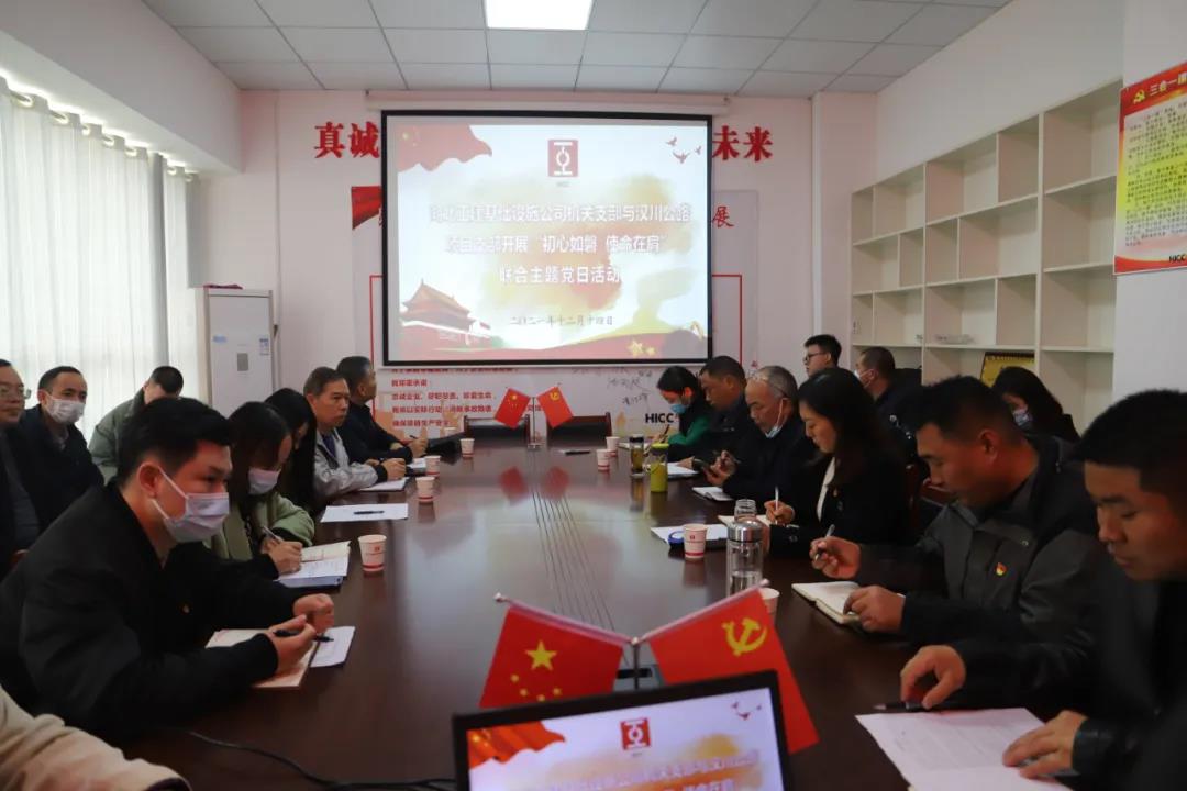 12月14日,公司機(jī)關(guān)黨支部與漢川項(xiàng)目黨支部聯(lián)合開展“初心如磐 使命在肩”主題黨日活動。活動由機(jī)關(guān)黨支部書記余錦風(fēng)主持,公司黨委委員、紀(jì)委書記馮文漫出席并講話。