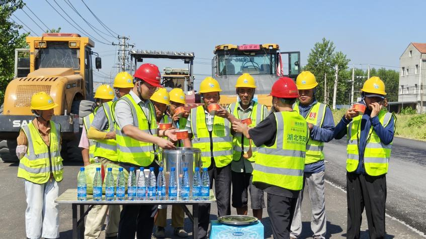 為切實做好防暑降溫工作、保障一線工人身體健康,漢川片區黨支部書記李昊、項目經理王程帶領黨員先鋒隊,深入水穩鋪設作業現場,為堅守崗位的工人送去瓶裝水、綠豆湯、西瓜等防暑物資,將黨組織的關懷與清涼送到大家心坎上。高溫下的堅守,是勞動者的擔當,烈日中的關懷,是黨組織的溫度。漢川片區黨支部的黨員干部以實際行動踐行初心使命,用貼心舉措詮釋先鋒模范作用,不僅為一線工人驅散了暑熱,更為項目順利推進凝聚起強大合力。目前,老荷沙線項目正按照節點目標有序推進,全體建設者正以飽滿的熱情沖刺施工任務。