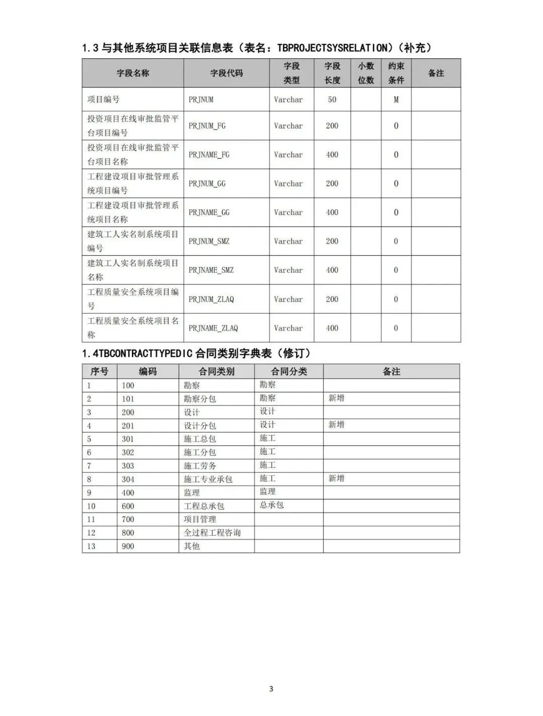 按照建設(shè)工程企業(yè)資質(zhì)標準要求,我部對全國建筑市場監(jiān)管公共服務(wù)平臺(以下簡稱全國平臺)工程項目信息數(shù)據(jù)標準進行了修訂,修訂后的工程項目信息數(shù)據(jù)標準見附件。請省級住房城鄉(xiāng)建設(shè)主管部門抓緊修訂完善省級建筑市場監(jiān)管一體化工作平臺相關(guān)數(shù)據(jù)標準,做好平臺改造升級工作,于2024年3月31日前完成與全國平臺對接。