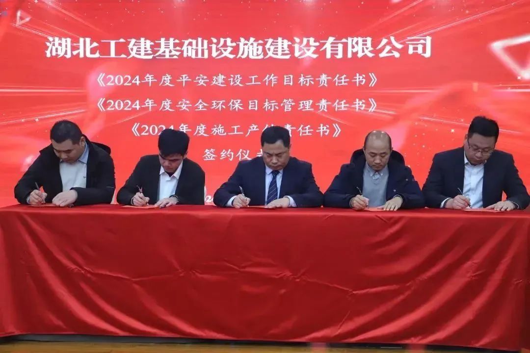 會(huì)議還組織了簽約儀式,馮文漫與支部書記代表簽訂《2024年度黨建工作目標(biāo)責(zé)任書》,與黨委副書記、執(zhí)行總經(jīng)理潘誠(chéng)文簽訂《2024年度經(jīng)營(yíng)目標(biāo)責(zé)任書》。潘誠(chéng)文與項(xiàng)目經(jīng)理代表簽訂《2024年度平安建設(shè)工作目標(biāo)責(zé)任書》《2024年度安全環(huán)保工作目標(biāo)責(zé)任書》《2024年度施工產(chǎn)值責(zé)任書》。