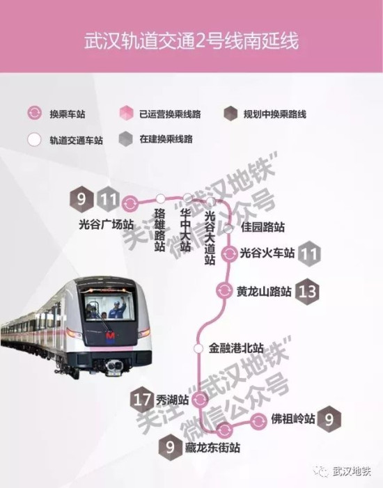 武漢地鐵2號線南延線工程起于2號線一期工程的光谷廣場站,沿線設(shè)珞雄路站、華中科技大學(xué)站、光谷大道站、佳園路站、光谷火車站、黃龍山路站、金融港北站、秀湖站、藏龍東街站,終點至佛祖嶺站,線路全長13.4km,均為地下線,沿線覆蓋了光谷地區(qū)以及眾多居住區(qū)。